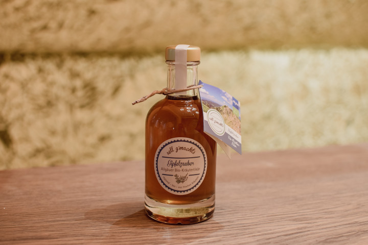 Der Allgäuer Bio-Likör mit Namen "Gipfelzauber" wird mit zahlreichen frischen Kräutern angesetzt. Dann braucht der Likör ein knappes halbes Jahr, in dem er reifen kann. Anschließend wird er abgefüllt und steht für all' das, was man mit der Allgäuer Natur verbindet: Frische Kräuter, klares Wasser, Berge und eine naturnahe Verarbeitung.